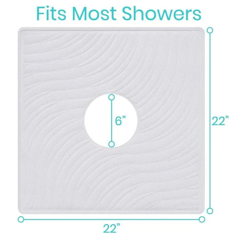 Yes, this large size shower mat fits nicely under most shower chairs.