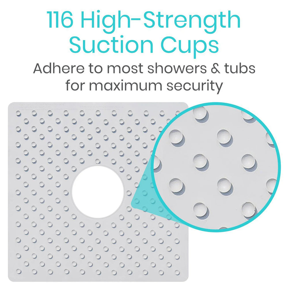 200 non slip suction cups securely attach to shower or tub floor for strong grip that won’t bunch or slide.