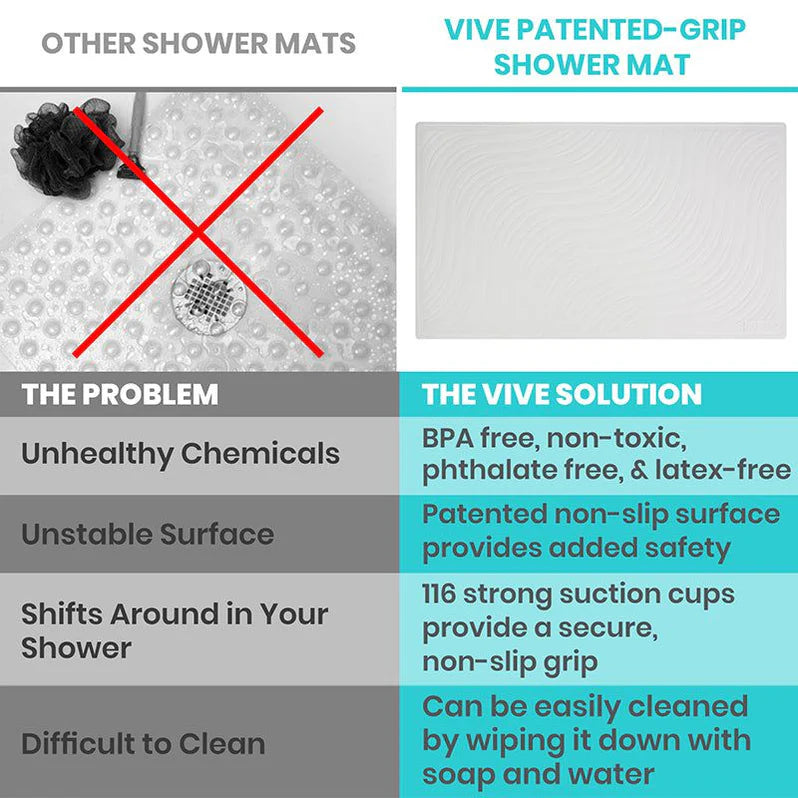 Generously sized at 28” by 16” to provide exceptional non-slip coverage for standard bathtubs