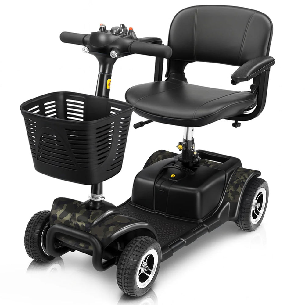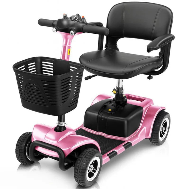 Disassembling into four pieces, the folding mobility scooter easily fits in most vehicles for on the go use