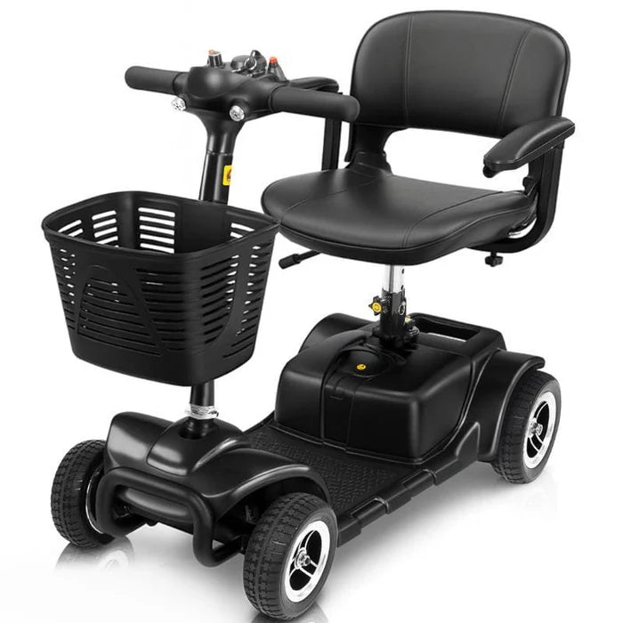 Disassembling into four pieces, the folding mobility scooter easily fits in most vehicles for on the go use