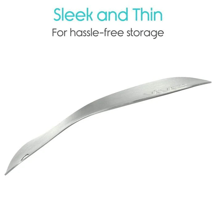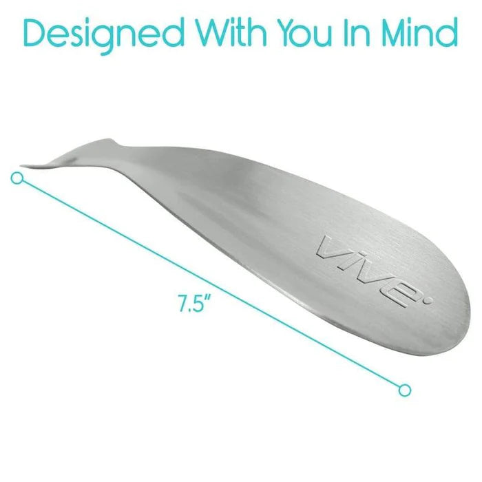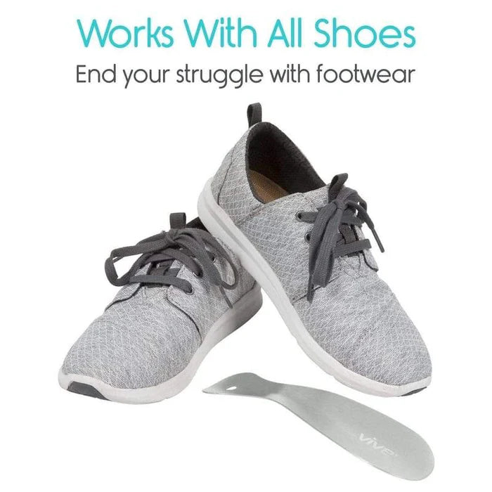 This shoe horn works great for a variety of shoe sizes. The shoe horn has two ends with different widths for varying shoe sizes.