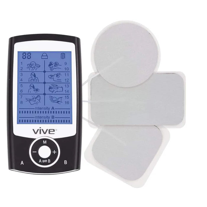 Includes: TENS unit, 8 electrode pads, 2 input electrode cables, 1 USB battery charger & 1 mini-USB cable