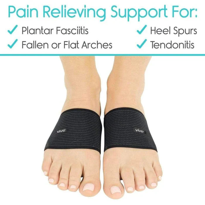 The foot arch supports provide compression therapy for relieving plantar fasciitis, heel spurs, tendonitis, strains and sprains, overpronation, flat feet and high arches.