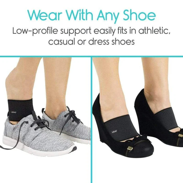 The slim arch support sleeves easily fit in any shoe style with or without socks or hosiery