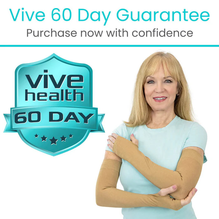 The Vive Arm Protection Sleeves are backed by a 60-day guarantee, allowing you to purchase with confidence. If you're not satisfied with the product, Vive offers customer support to assist with any issues.