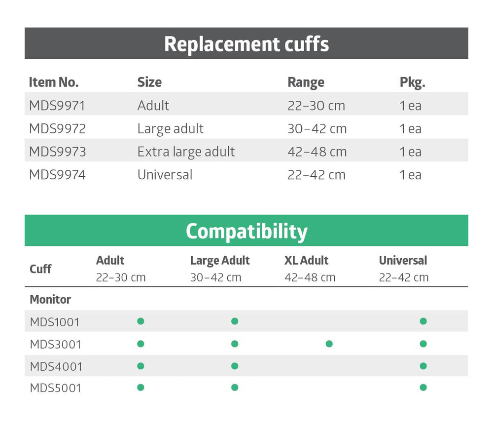 Customizable Cuff Options: Available with your choice of Adult Cuff or Large Adult Cuff to ensure proper fit and accurate readings. Replacement cuffs are also available separately, including standard adult (MDS9970) and large adult (MDS9971) sizes.