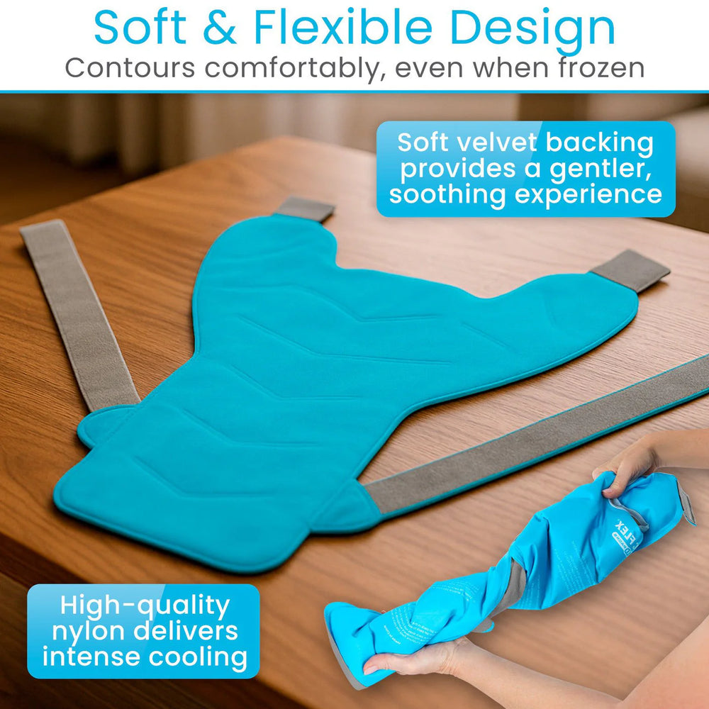 Enjoy soft velvet comfort against your skin and durable nylon for effective cold transfer. This reversible design ensures safe, soothing therapy during every use.