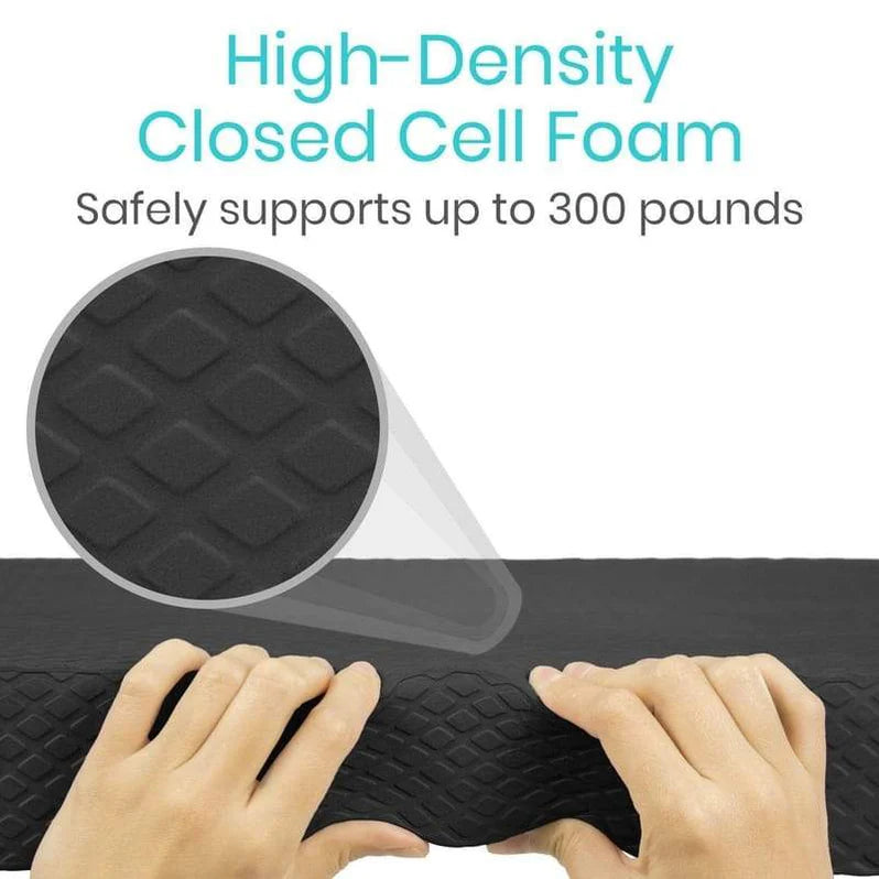 Extra large balance pad platform is lightly textured for greater traction and stability on any flat surface