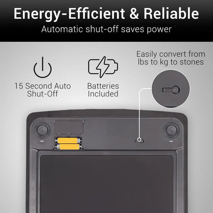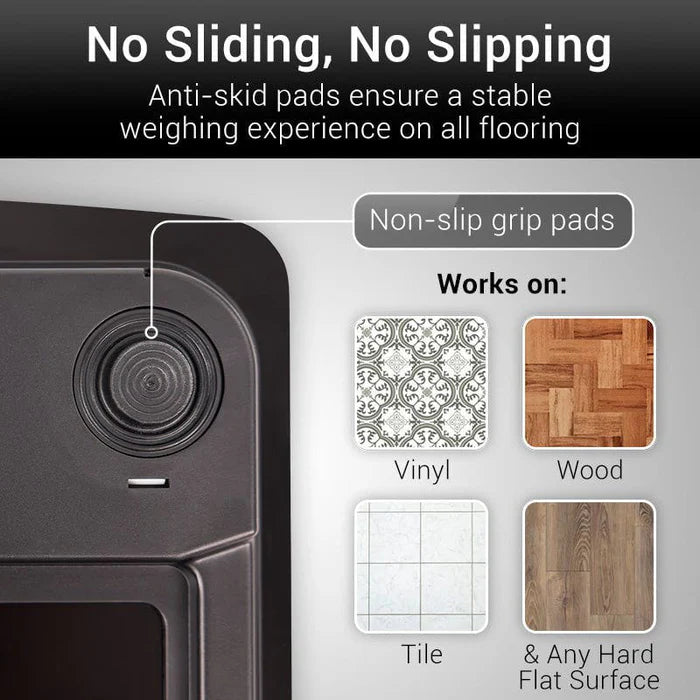 With a sleek black finish, this scale offers a minimalist look that seamlessly fits into any home or bathroom décor while taking up minimal space.
