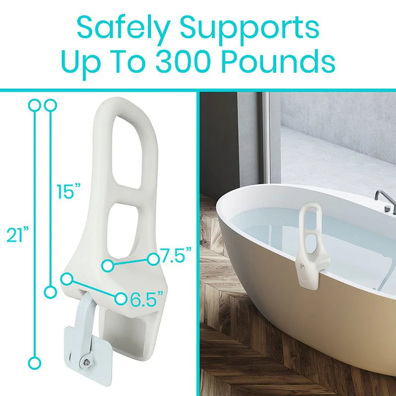 Safely enter or exit the bathtub with stabilizing support for seniors, children and those with limited mobility