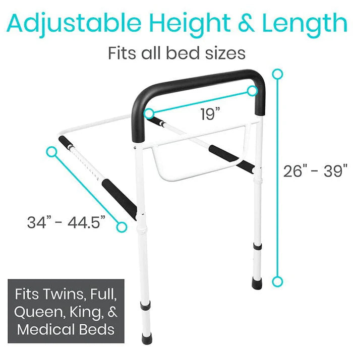 Coated with a nonslip foam, the stability bar and capped legs ensure the bed rail will not slide or tip for greater safety and security