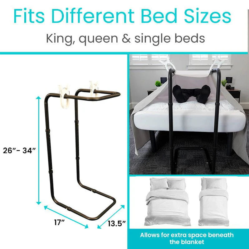 The Vive blanket lifter features strong and durable steel construction that is capable of securely supporting heavy blankets, sheets, or comforters. Stay warm and comfortable while preventing friction and direct contact body parts