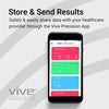 Available for both iOS and Android devices, the blood pressure monitor wirelessly connects to the Vive Precision app for easy tracking
