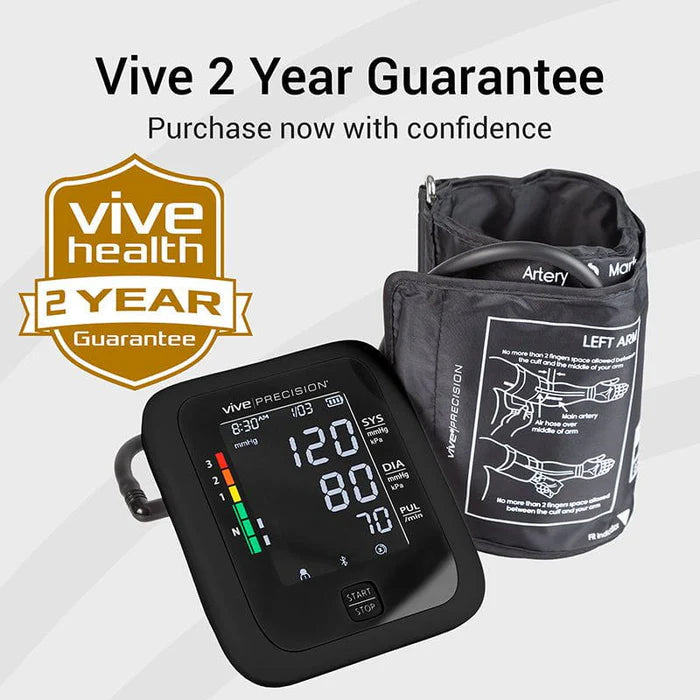 Stores and recalls 99 complete blood pressure readings with unlimited historical data on the Vive Precision app