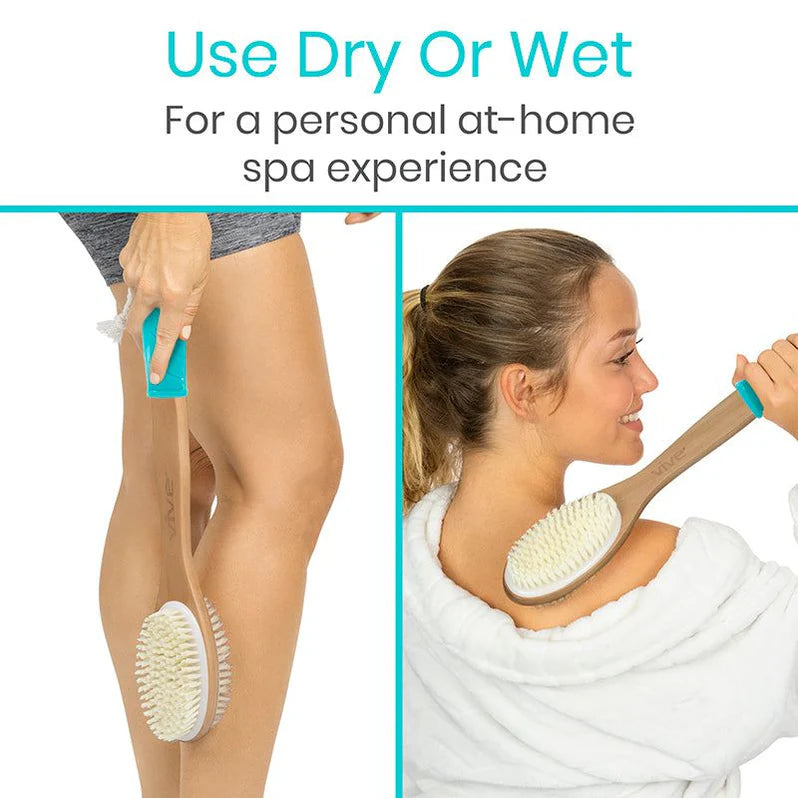 Yes, the boar bristle side is perfect for exfoliating and smoothing dry skin either dry or wet.