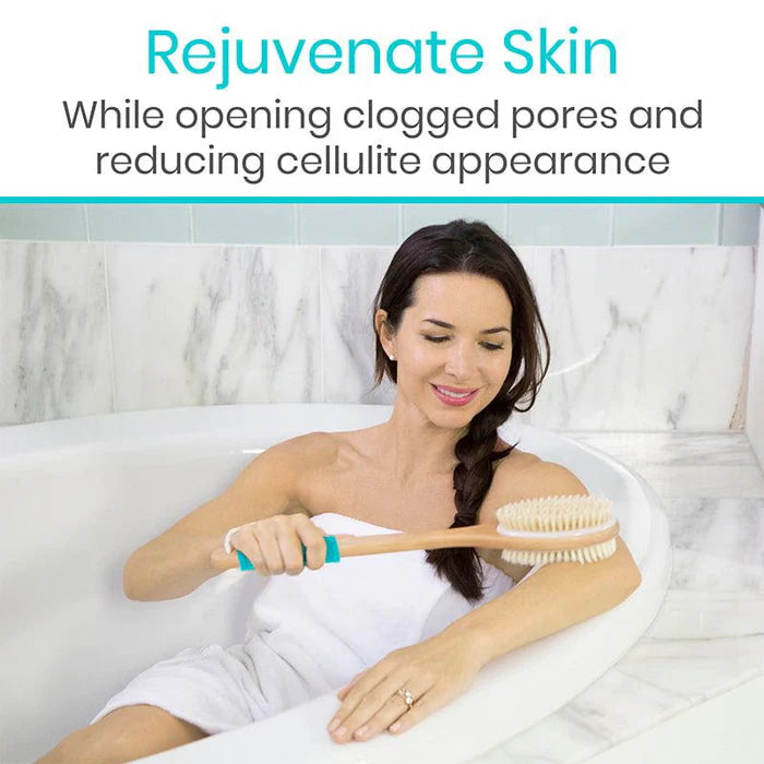 Dry brushing unclogs pores and remove toxins from the body. It involves brushing your skin with a firm brush without water or lotion. Always start at your feet and brush towards your heart.