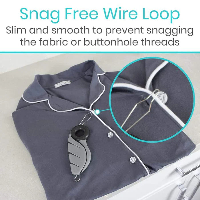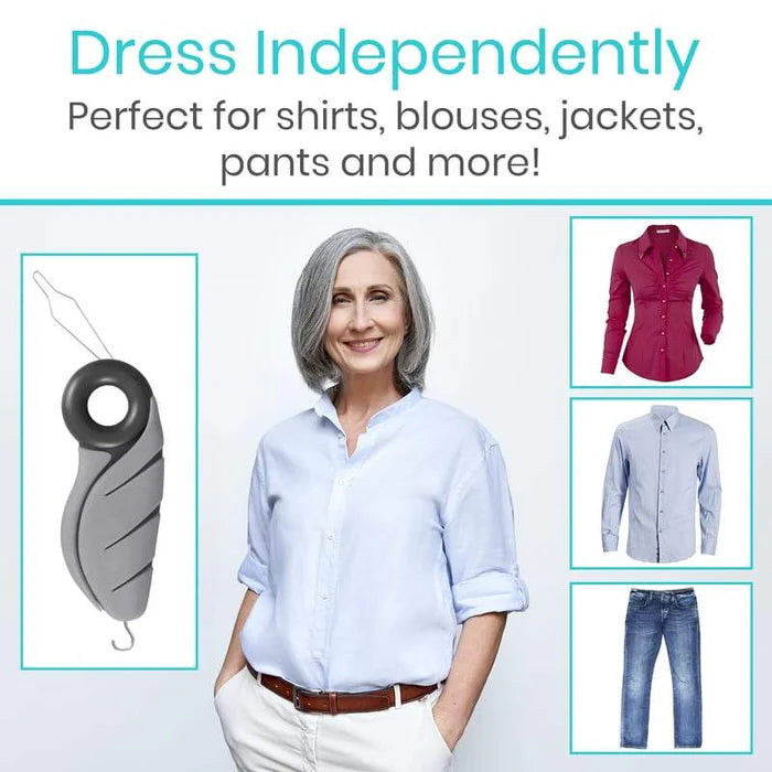 Great for those with limited dexterity, arthritis or carpal tunnel, the Vive button hook allows you to easily button shirts, blouses, pants, shorts and more