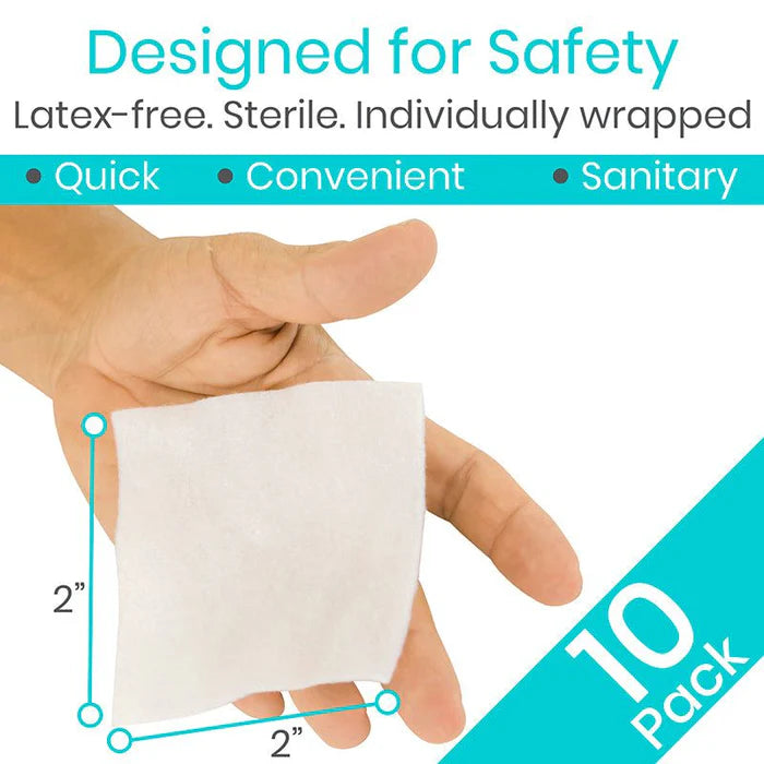 The calcium alginate wound dressings include 10 individually wrapped dressing pads.