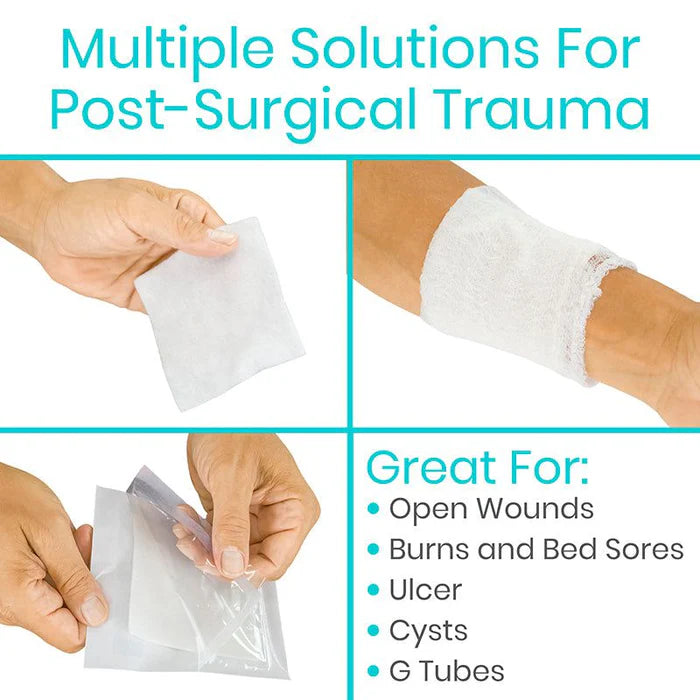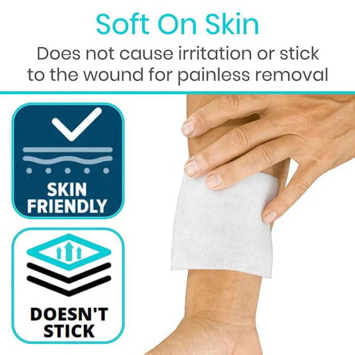 Made with calcium alginate, the wound dressing will not irritate or stick to the wound for painless removal