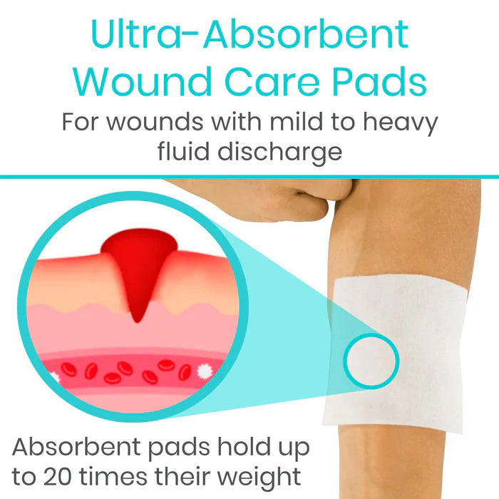 Ideal for traumatic and surgical wounds, burns, pressure sores and diabetic ulcers, the Vive Care calcium alginate dressing pads cover and protect wounds of all sizes