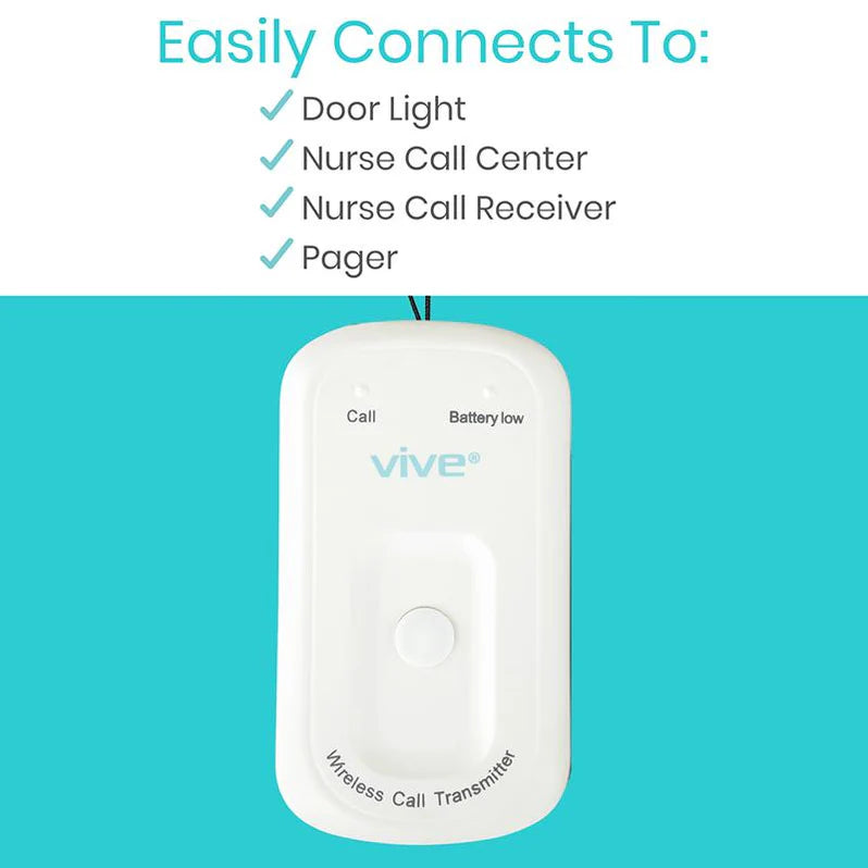The Vive call button and Vive pager have a range of up to 150 in an open field. Interior walls and flooring may reduce the range available for reliable alerts.