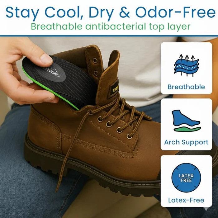 Keep your feet dry and comfortable throughout the day with these moisture-resistant insoles. The advanced material repels moisture, ensuring your feet stay dry, which is essential for maintaining comfort during long periods of wear, especially for those with busy lifestyles or those who engage in rigorous activities