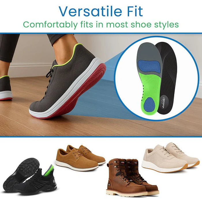 Experience unparalleled relief from foot pressure and discomfort with the Vive Carbon Fiber Insoles, expertly designed to alleviate pain in the arch and ball of your foot. These insoles, crafted from high-strength materials, not only enhance stability but also prevent common foot injuries such as turf toe, fractures, and more, making them a must-have for daily wear and pain relief