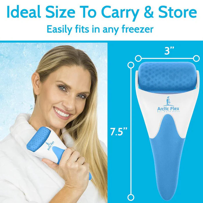 Designed to fit comfortably in the hand, the curved handle provides greater control of the icy roller for targeted relief