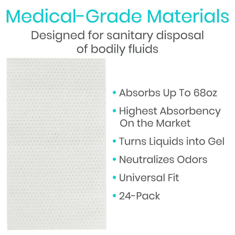 Includes 24 super-absorbent pads for camping, boats, RVs, bedside commode chairs and more