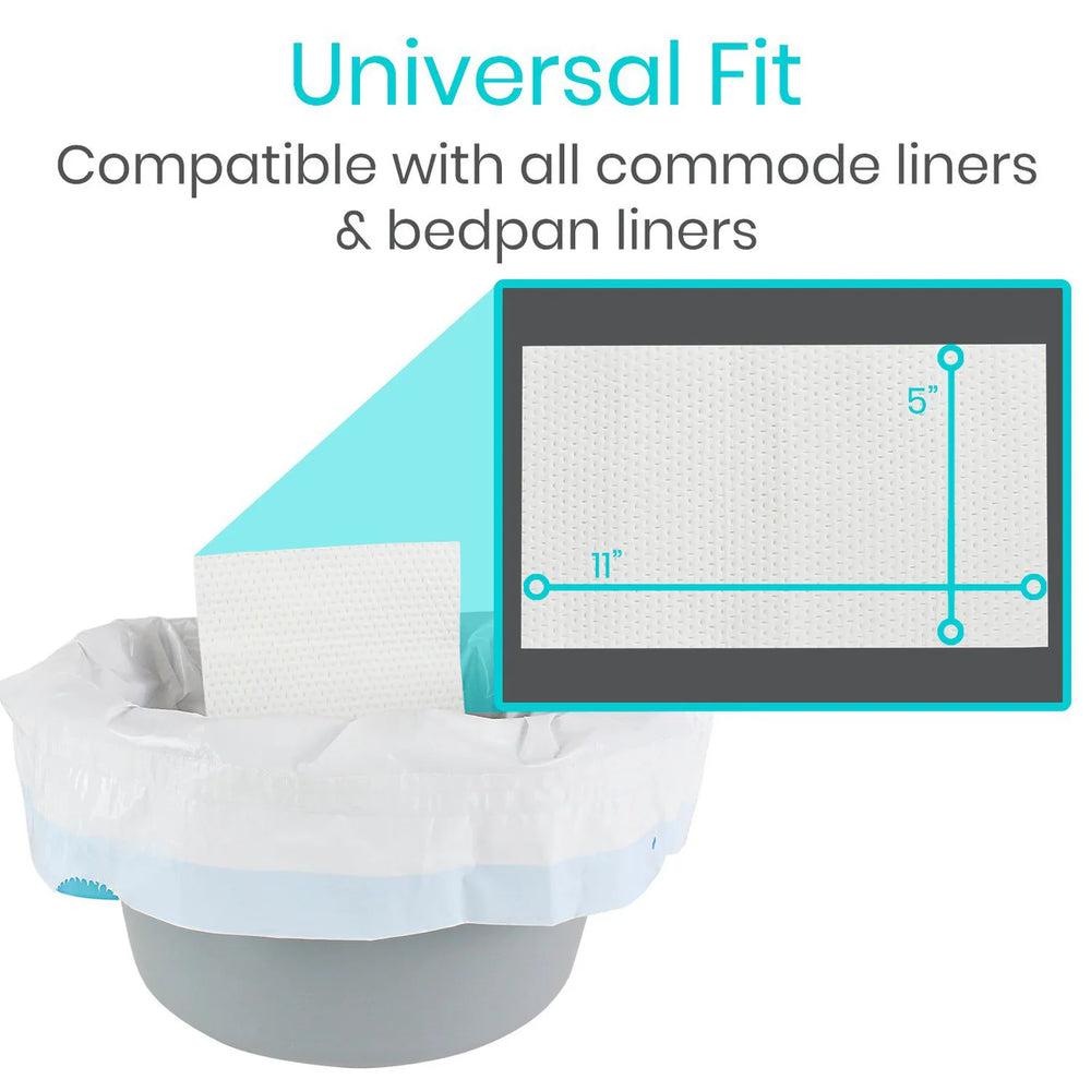 Our absorbent pads are sized to fit any commode liner or bedpan liner for sanitary use