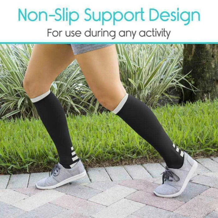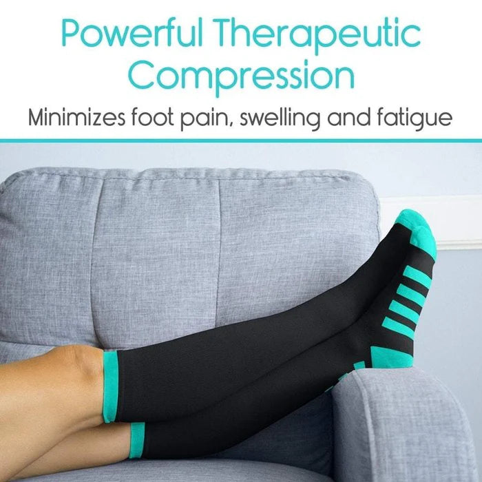 Medical grade compression (20-30 mmHg) provides effective recovery for tired, aching feet and calves
