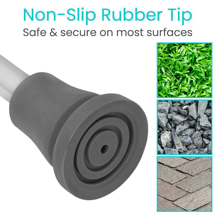 Take each step with confidence thanks to the integrated rubber treads on the bottom of each crutch. These non-slip rubber tips ensure greater traction with every step, so you can navigate a variety of terrains with ease and peace of mind