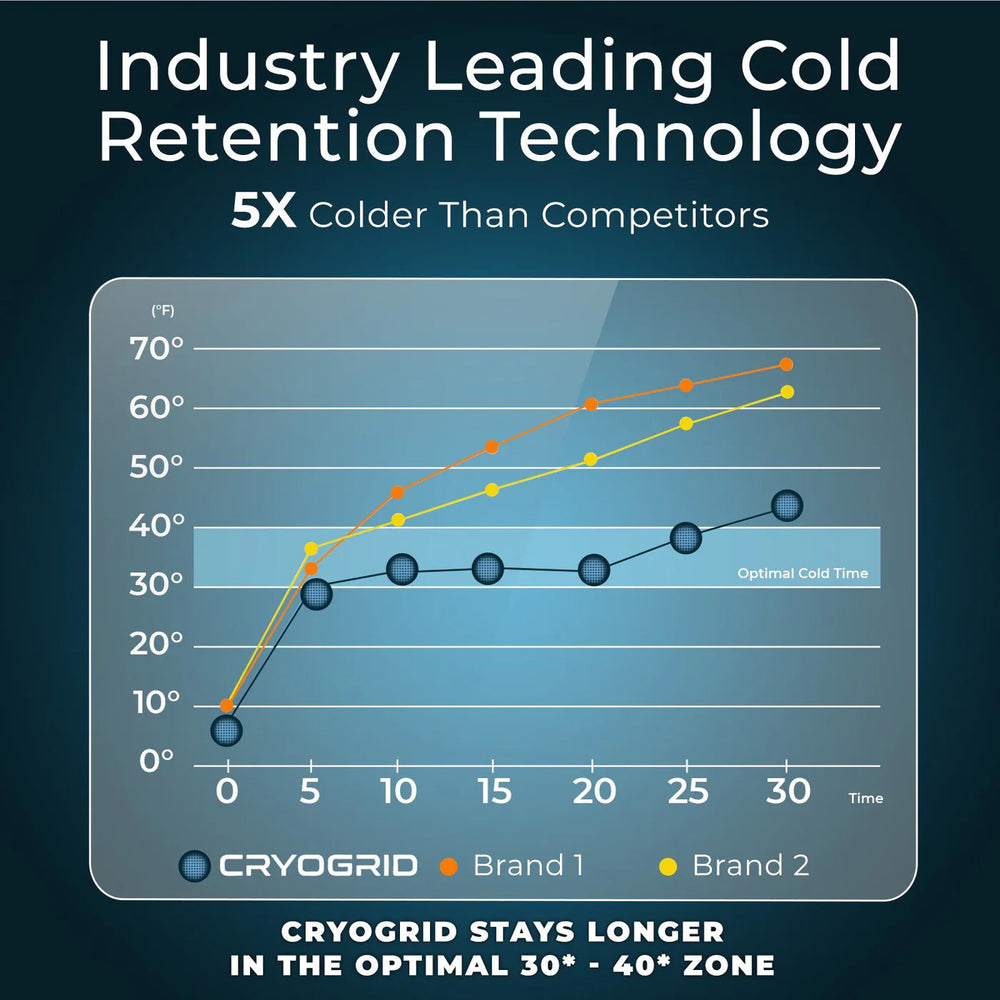The Vive Cryogrid Wrist Ice Wrap features a unique Cryogrid design that ensures balanced temperature distribution across the entire wrist. This advanced design offers even cold therapy, enhancing pain relief and aiding recovery.