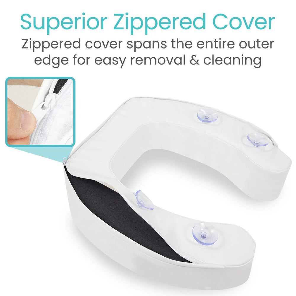 The Vive toilet seat cushion features a zippered cover for added protection.