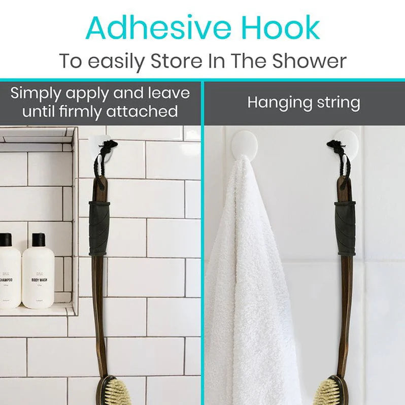 Hang your body brush in or out of the shower with the included adhesive hook or store the entire set in the cloth carry bag for easy storage or travel