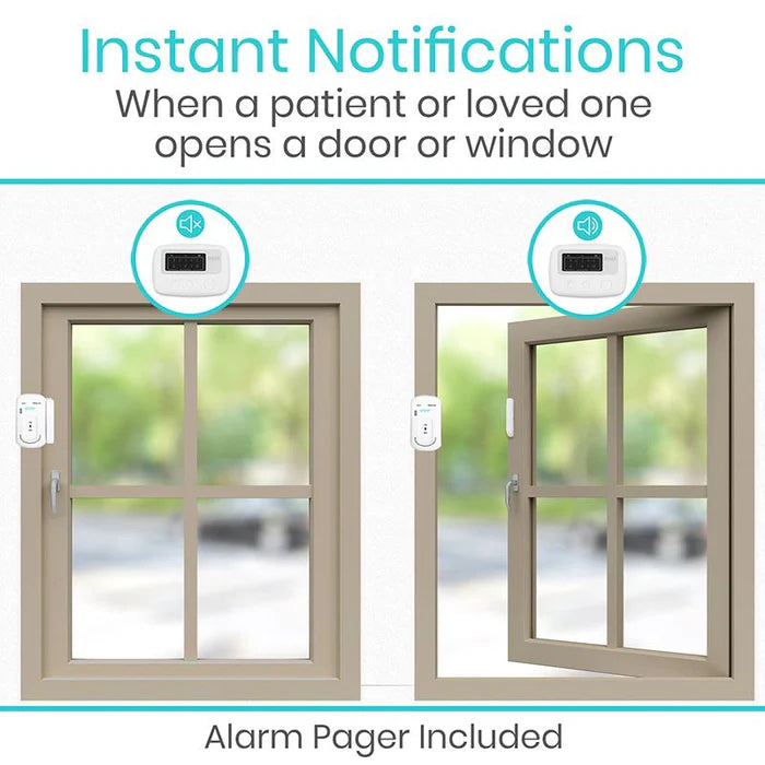 The door and window alarm provides instant alerts for remotely monitoring a patient or loved one to prevent hazardous wandering