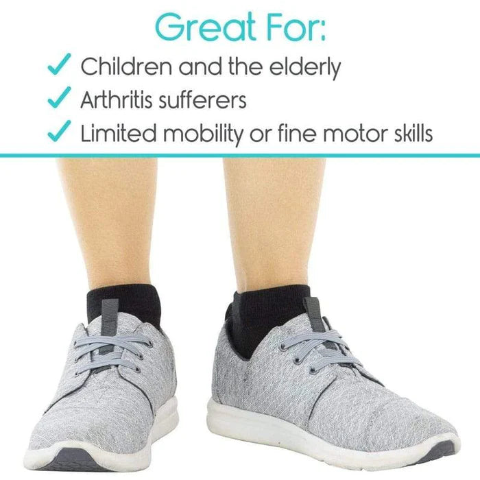 Each flexible lace stretches to allow shoes to be easily slipped on and off and alleviate pressure points caused by swelling throughout the day