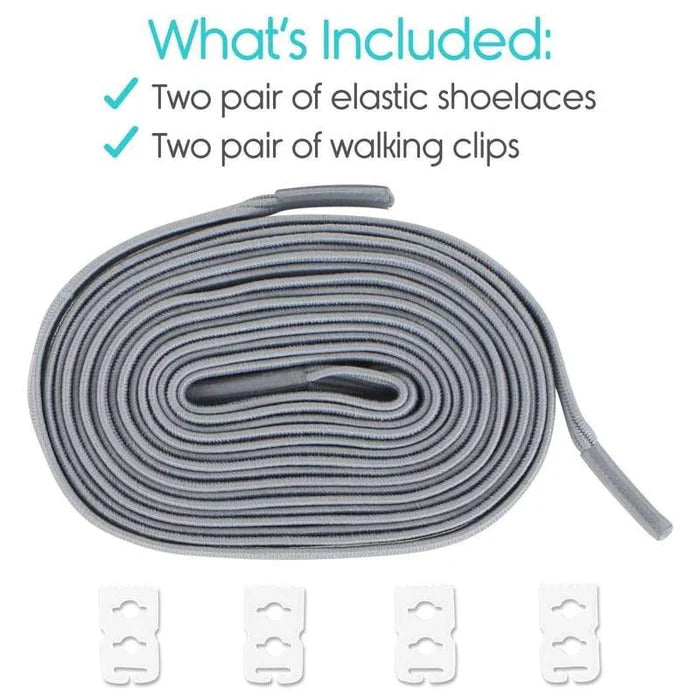 This set includes two pairs of elastic shoelaces and two pairs of secure walking clips