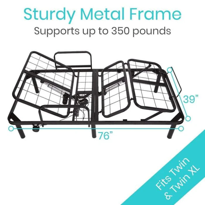 Sized to fit a twin or twin XL mattress, the adjustable electric bed frame is constructed with durable steel to support up to 350 pounds