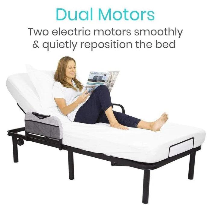 Powerful dual motors smoothly and quietly elevate the bed frame to the desired position