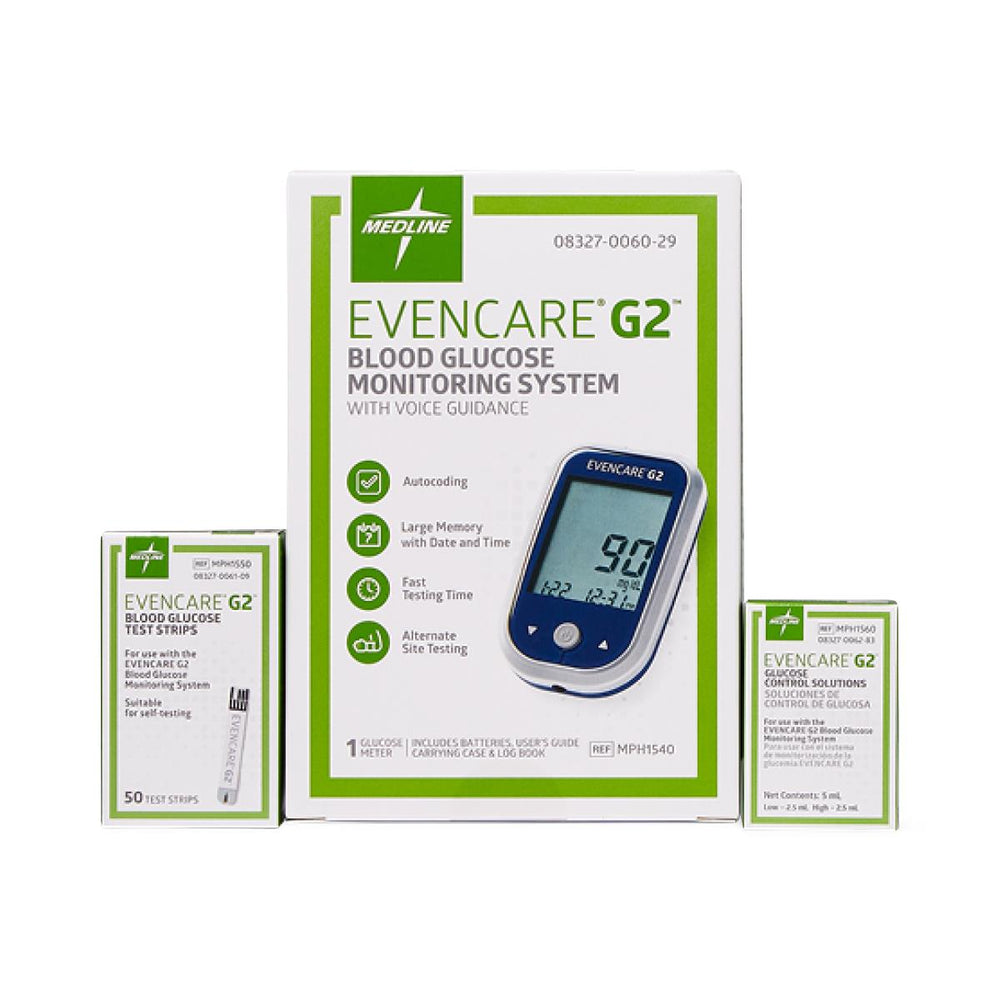 Your EvenCare G2 Blood Glucose Monitoring System arrives as a complete kit with everything you need to begin testing immediately. The package includes the glucose meter with voice guidance (select models), two AAA batteries for extended operation, a durable carrying case to protect your meter during travel, a comprehensive user's guide with step-by-step instructions, and a log book for manual record-keeping. The convenient carrying case keeps all your testing supplies organized and protected, whether you're at home, work, or traveling.