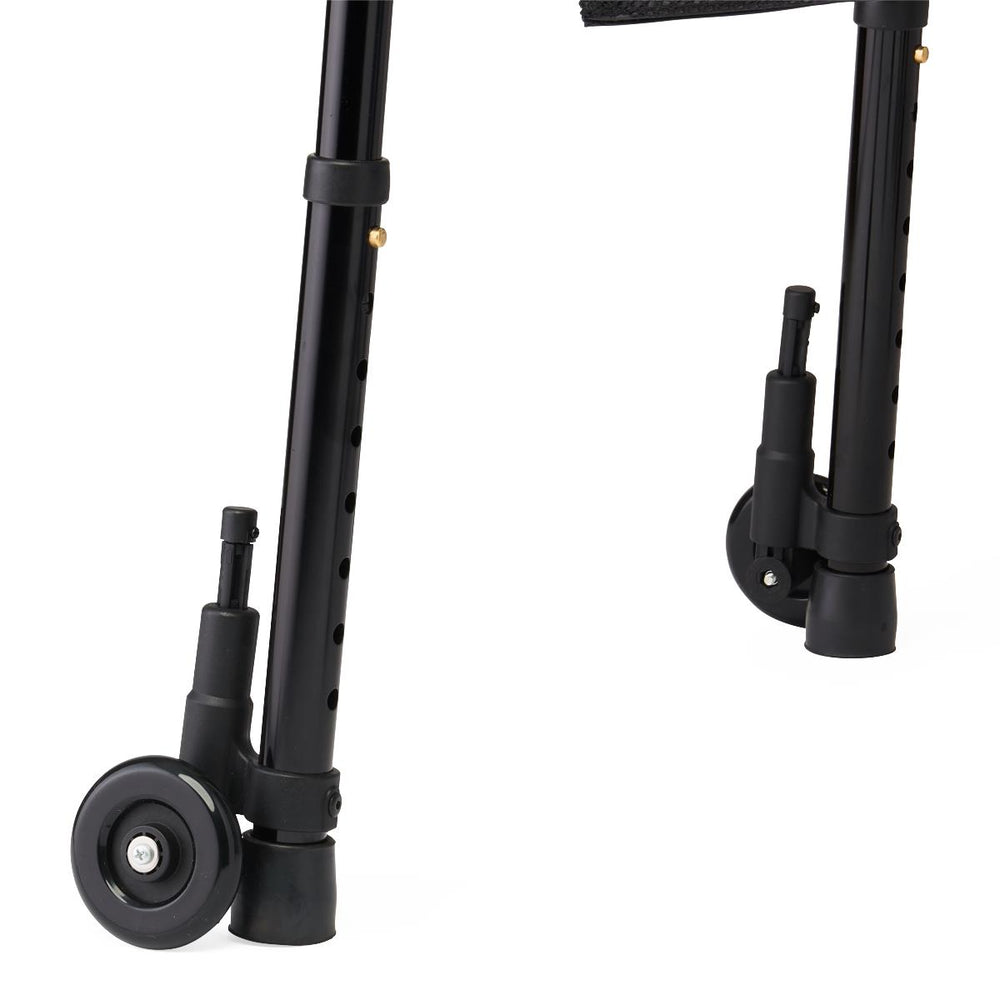 Equipped with oversized 5-inch wheels and innovative wheeled glide brakes, this walker delivers an exceptionally smooth rolling experience across various surfaces. The larger wheel diameter effortlessly navigates over thresholds, cracks, and uneven terrain that would stop smaller wheels. The integrated glide brakes provide reliable stopping power while maintaining continuous ground contact for enhanced stability and control.
