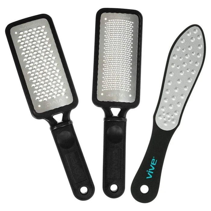 The rough and coarse files are gently curved to allow easy movement around the heels, elbow and other contoured areas