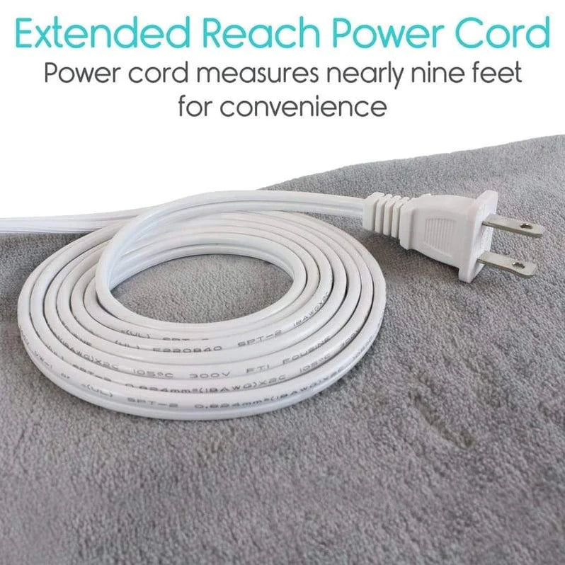 The extra long 120v cord lets you soothe pain and rest comfortably in any location