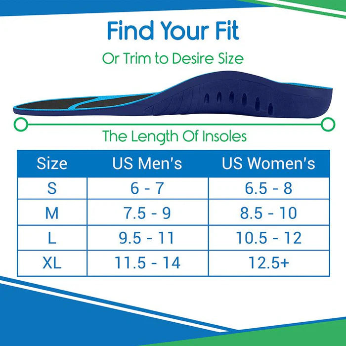 Available in four sizes, our full-length shoe inserts can be trimmed for a custom fit in your favorite athletic, casual, dress shoes or boots