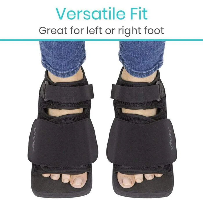 Neutral design fits the left or right foot with two fastener straps for a comfortable fit that accommodates swelling and bandages