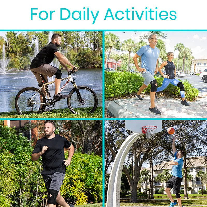 The hinges provide extra support to the knee compared to a regular knee brace. The hinges keep your knee from bending in directions that may injure or re-injure ligaments, tendons. It is great for people who have existing knee problems and want the extra stability while performing athletic activities.