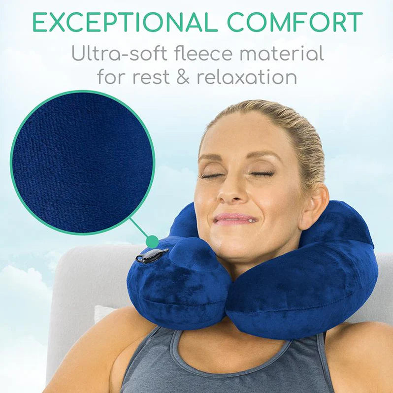 Great for traveling, office work or simply relaxing, the inflatable neck pillow comfortably supports the head, jawline and neck