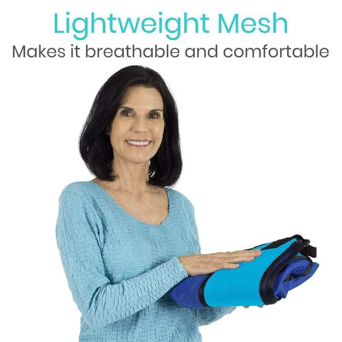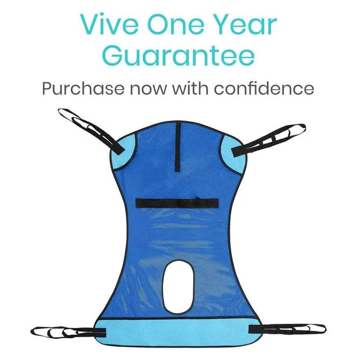 The Vive lift sling features a 12” by 8” opening for greater convenience when toileting on a bedside commode or standard toilet.